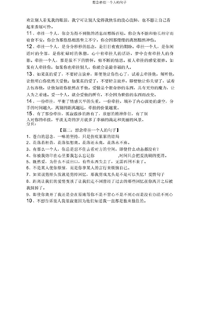 3挂是人之间最珍贵的情感,牵挂是慷慨的给予和无私的奉献,牵挂是深深的祝福与默默的祈祷,它不近功利不含虚假,牵挂是一种情感的交织,牵挂是一种心灵的维系,牵挂是一份浓郁的思念4牵挂一个人,你会忆起失意时。