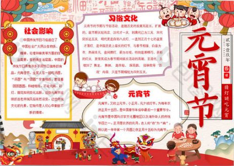 元宵节,又称上元节、小正月、元夕或灯节,是中国的传统节日之一,时间为每年农历正月十五。那么关于元宵节的手抄报内容资料你们知道多少呢?小编已经为你们准备好了,赶紧收藏起来吧。