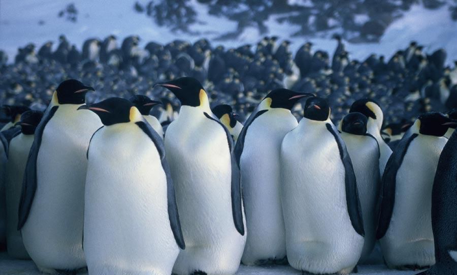 6、尽管寒冷席卷平原,尽管形状怪异的冰山挡路,迁徙队伍从各个方向走来,相遇、汇合、总是在同一天、同一个时间、同一个地方,就像被施了魔法一样。