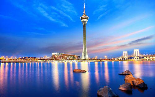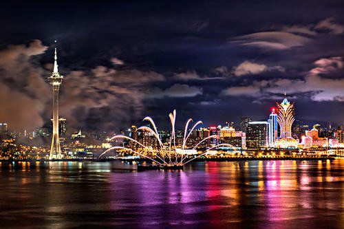 7、这城市没有黑夜,夜景倒映在海面上。