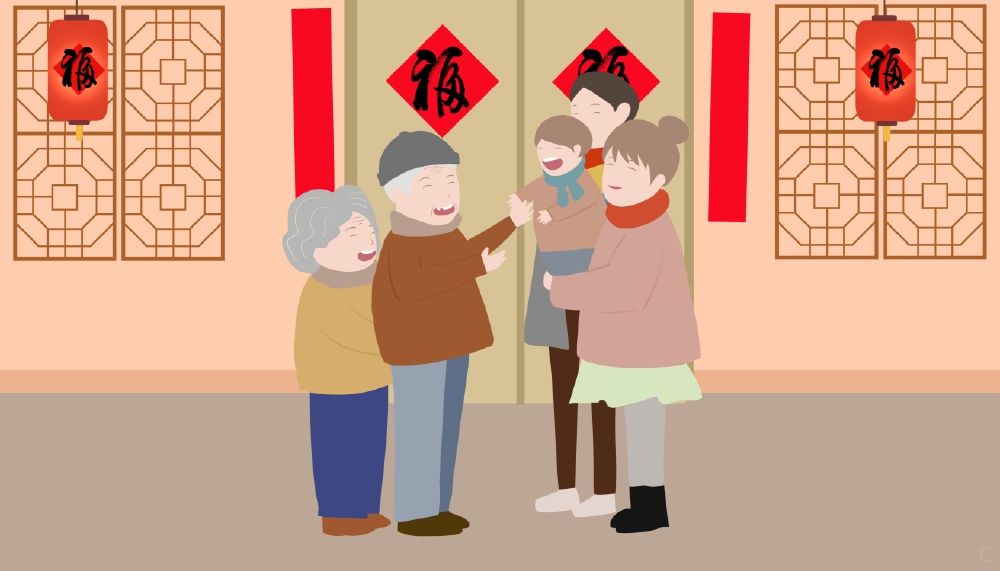 26、喜气洋洋访亲友,笑语盈盈情意久。