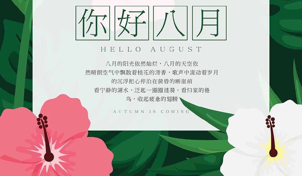 8、你好八月,希望在你的管辖范围内,我可以做到平平淡淡,从从容容,非常淡定的生活