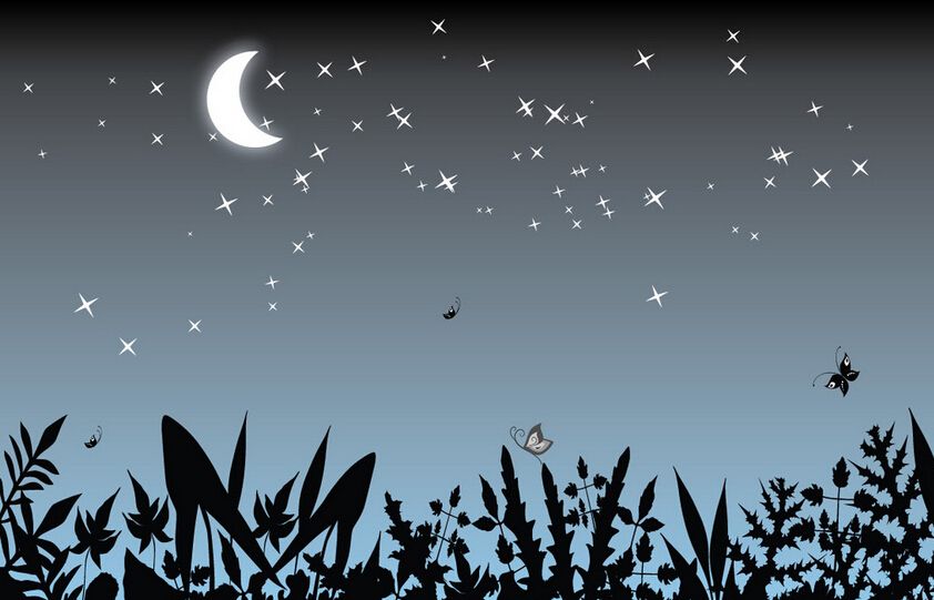 19. 夜,幽幽的月光,洒落在我的脸颊。夜,闪闪发光的星星,编造了许多美好的故事。