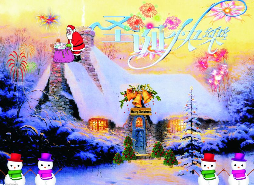4、 雪花迎风飞舞,灯火温馨浪漫;钟声清脆悦耳,歌声萦绕久久;快乐漫天飞扬,心情开心不已;驯鹿奔跑不停,银铃响彻云霄;礼物从天而降,祝福发送不停。朋友,祝你圣诞开怀,一切如意!