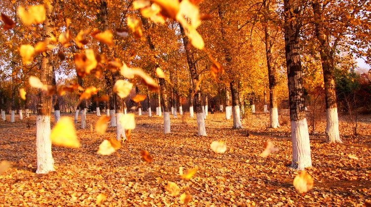 3、站在树木之间,我静静地听,落叶坠地,隐约响起了薄如蝉翼的窸窣声。那一刻,我想象着秋天的原野有着莫奈笔下的金黄,那样地绚烂。我拟想暮色渐浓的窗外,秋林的深处,有一座尖塔顶的大庄园,轮廓模糊、温情脉脉地静默着。习习凉爽的秋风吹过,不时有金黄的叶子在我面前缓缓飘下,那般温柔,那般安静,那般轻盈,仿佛在守护一个易碎的梦。