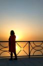 5、夕阳送你登程,风儿送你远行,留下的是彩霞、晚空。你何时归来,月下、窗前,双双成影。