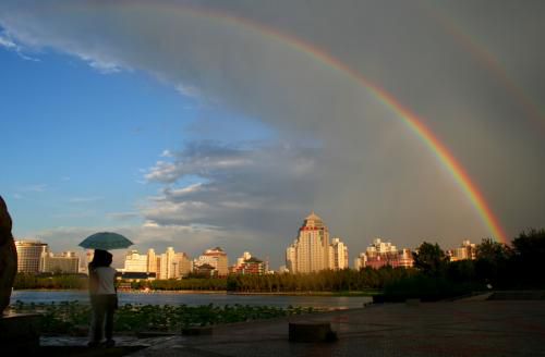 7、残虹收度雨,缺岸上新流。——陈正见 《后湖泛舟》