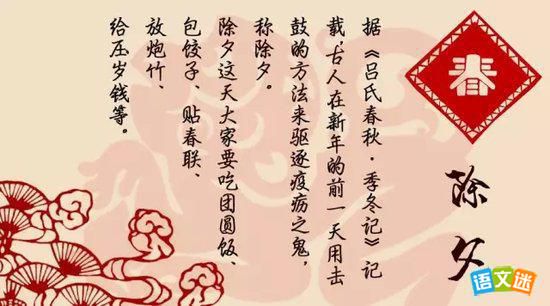 爆竹声中一岁除,春风送暖入屠苏。除夕夜,吃团圆饭,家家户户多热闹。