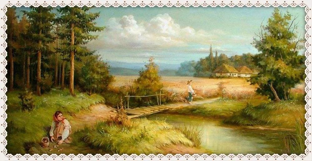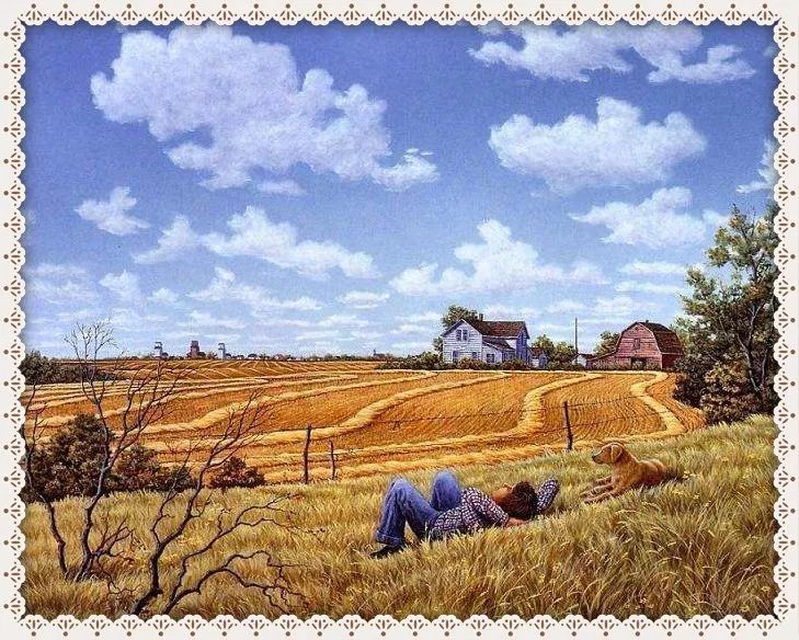 29、夕阳西下,炊烟袅袅,青山连绵;老屋墙根,草垛静穆,芦花摇曳;稻花飘香,黄牛悠闲,草地广袤……