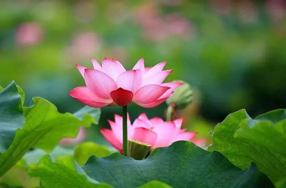 19、红白莲花开共塘,两般颜色一般香。恰似汉殿三千女,半是浓妆半淡妆。——宋·杨万里《红白莲》