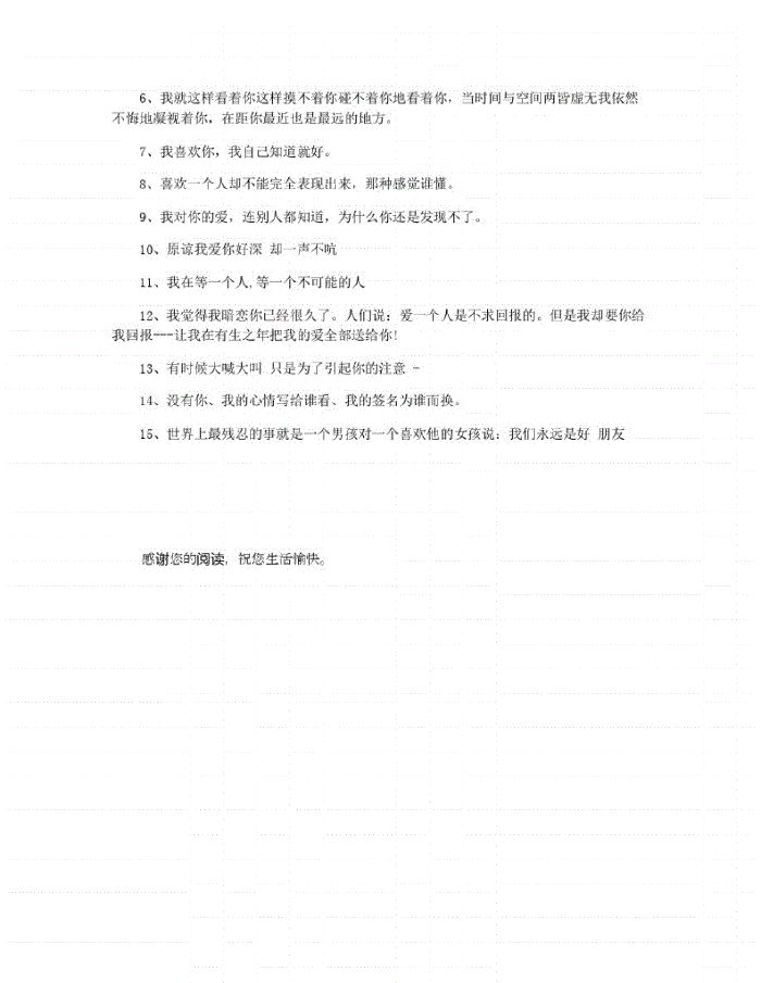 给暗恋的女生留言句子 一有没有那么一瞬间,你上是为了找我,让我陪你聊天二我眯着眼,头不转向地偷偷向你望去,是我怕眼神出卖我的心三如果我深深地爱上了一个女孩子,我一定会了解她,给她想要的。