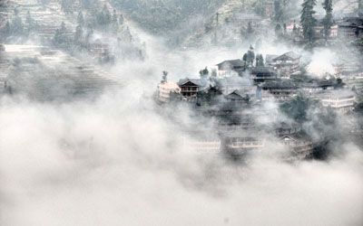 5、迷蒙的云雾像披着面纱的少女,像缥缈的仙境,像朦胧的山水画。