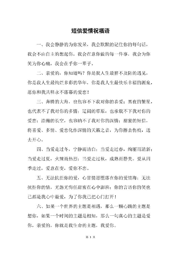 爱情短句大全