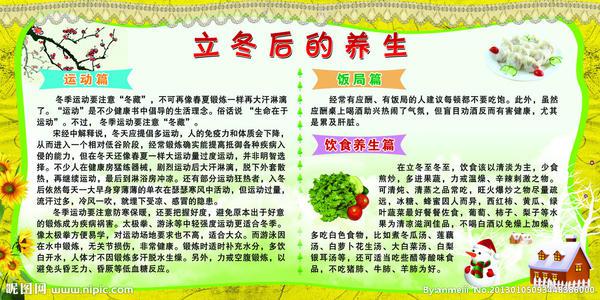 3.当寒冷的冬天到来时,您的健康就需要做好:您必须吃饭和选择,并且平衡适中;您必须喝酒检查身体,保持温暖和滋养;你必须练习,你不应该过度;笑着玩,开心生活!