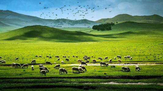 这次我看到了草原。那里的天空比别处更可爱。空气是如此清新,天空如此清澈,所以我一直想唱一首歌,表达我的幸福。在天空下,有一千英里,但并不广阔。四面都有山丘,平坦的地面是绿色的,山丘也是绿色的。过了一会儿,绵羊爬上山坡,然后再下来,无论走到哪里,它们看上去都像大白色的花朵绣在无尽的绿色地毯上。丘陵的线条是如此柔和而美丽,就像一幅仅用绿色绘制的中国画,没有墨迹,翠绿色随处流淌,轻轻地流入云层。这种状态既惊人又舒适。我想站很久,环顾四周,我想坐下来唱一首美丽的诗。在这个领域中,即使是骏马和公牛也停滞了片刻,仿佛让人想起了草原的无限欢乐。