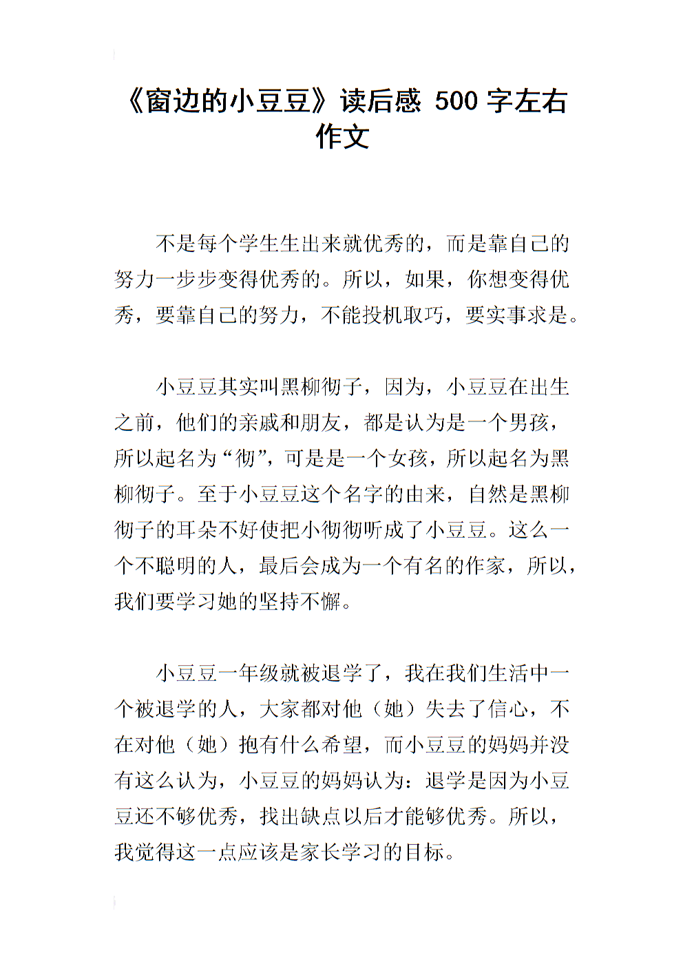 窗边的小豆豆读后感550字