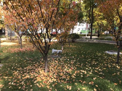 2.校园里一排排花坛非常漂亮。小华不喜欢秋天的雨,所以她把裙子弄湿了,躺在草地上。在秋天,小草变成了黄色的衣服,而不是绿色的衣服。真的很独特。